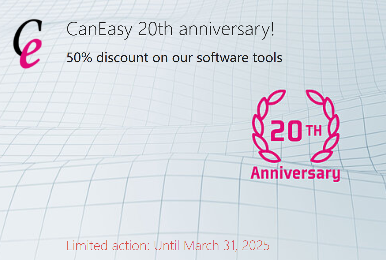 慶祝CanEasy公司20周年,所有軟件5折優(yōu)惠,僅限3月!